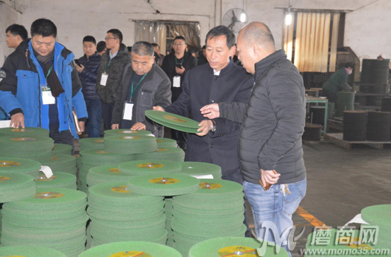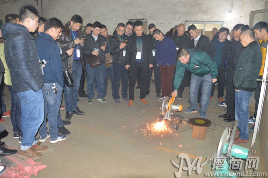 2017年12月11日上午,參加會(huì)議的代理商們陸續(xù)抵達(dá)盛森磨具工廠,并在盛森磨具董事長(zhǎng)許群英的帶領(lǐng)下分別參觀兩個(gè)廠區(qū)。車間內(nèi),許群英向各代理商伙伴展示了公司最新的切片產(chǎn)品。據(jù)悉,盛森磨具于今年成功研發(fā)出三代不銹鋼切割片,無論是從產(chǎn)品的切削力度還是耐磨性,都較傳統(tǒng)切片有了更大的提升和突破。為了更直觀地向來訪的各位代理商伙伴們展示產(chǎn)品在實(shí)際操作過程中的使用情況,盛森磨具技術(shù)人員在車間內(nèi)為大家進(jìn)行產(chǎn)品的現(xiàn)場(chǎng)切削演示。